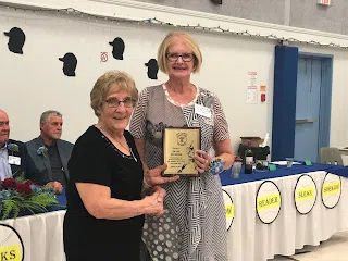(Erna Sobkow, wife of the late Bill Sobkow accepting his 2019 Sask. Baseball Hall of Fame plaque)
