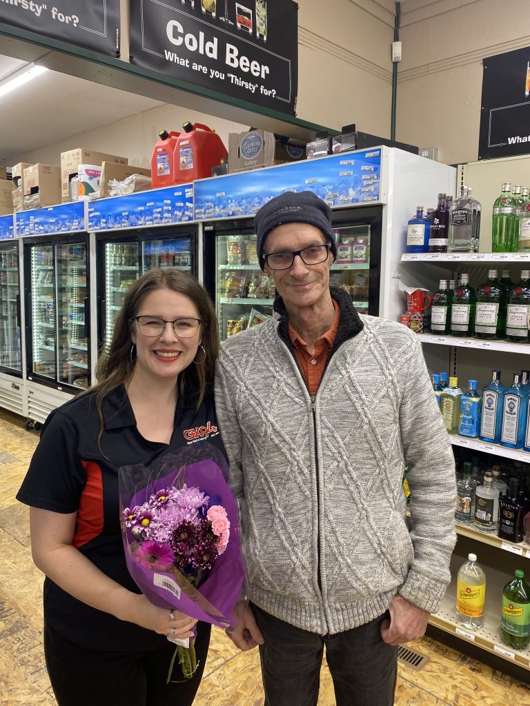 It was a beautiful day in Preeceville selling the GX94 Christmas Goodies cookbooks. I got to have coffee with a dear friend who I haven’t seen in years. We sold over 200 cookbooks! Patty and Garth at Thirsty Dogz are so much fun to work with. Patty even made a cake for my boys!! Which they LOVED! And a first happened for me. A listener from Preeceville came to Thirsty Dogz and brought me a bouquet of flowers. He wanted to thank us for all of the money we have raised for local charities. It was a really feel good day!