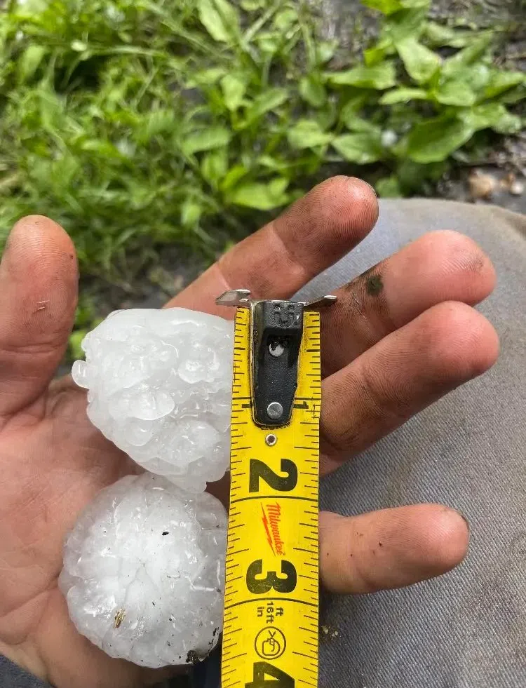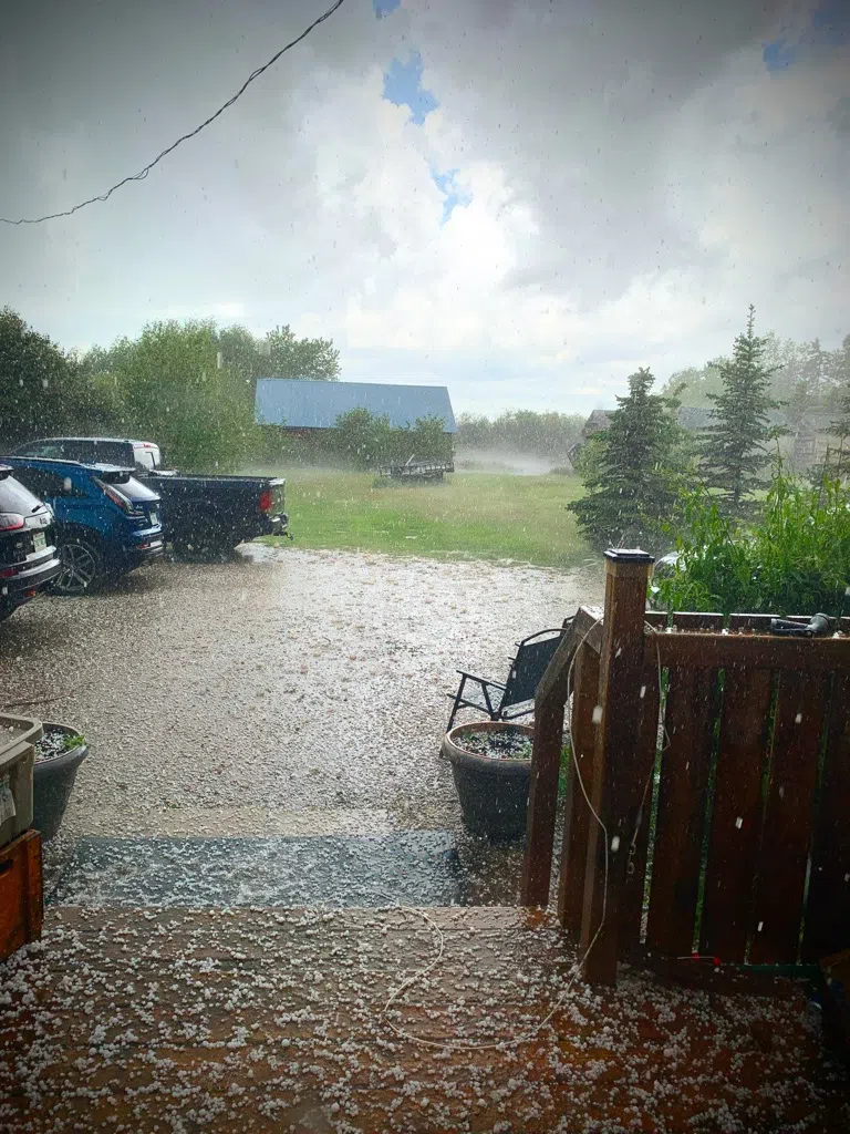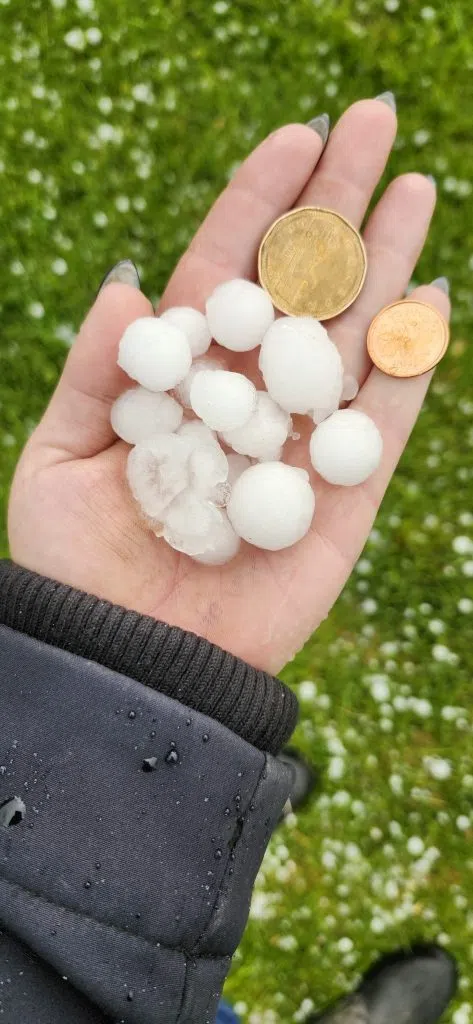 And then we got two pictures of hail, one (right) from around the MacNutt area, and one (left) from the Sheho area.