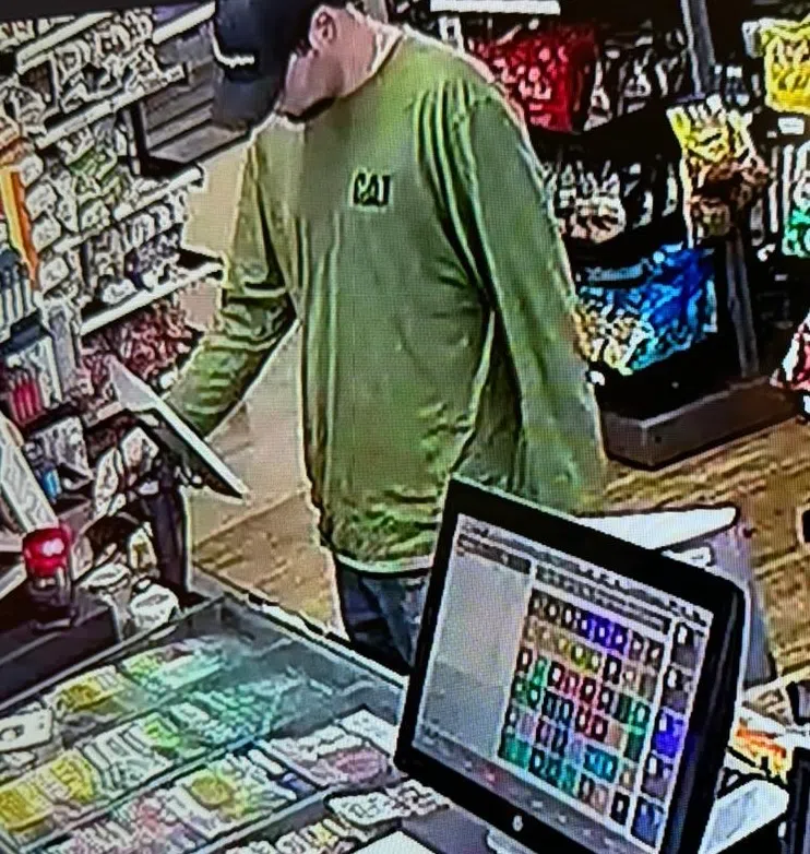 This morning around 7:20 AM, the suspect attended Petro Canada in Grenfell in a Black GMC Durmax with Sask license plate 237 LIQ that was stolen from Virden, MB, yesterday.