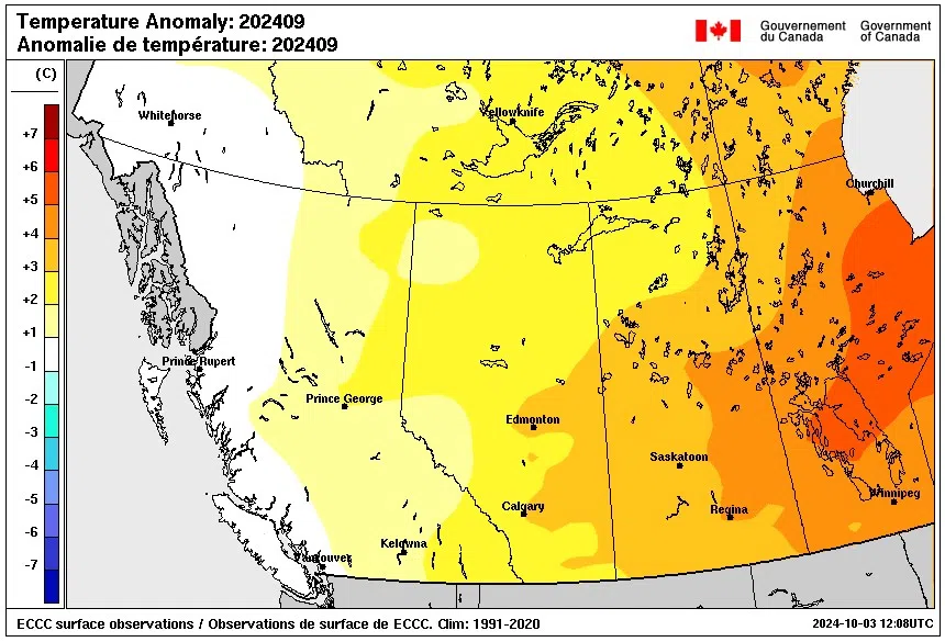 “A persistent ridge of high pressure which caused the jet stream to bring in a lot of warm, dry air from the south, so we were under the influence of this upper ridge for most of the month – give or take a couple days of the month – but that’s what was really driving most of the weather for the month of September, and that’s why we were seeing a flood of warm air over much of southern and central Saskatchewan.” said Desjardins.