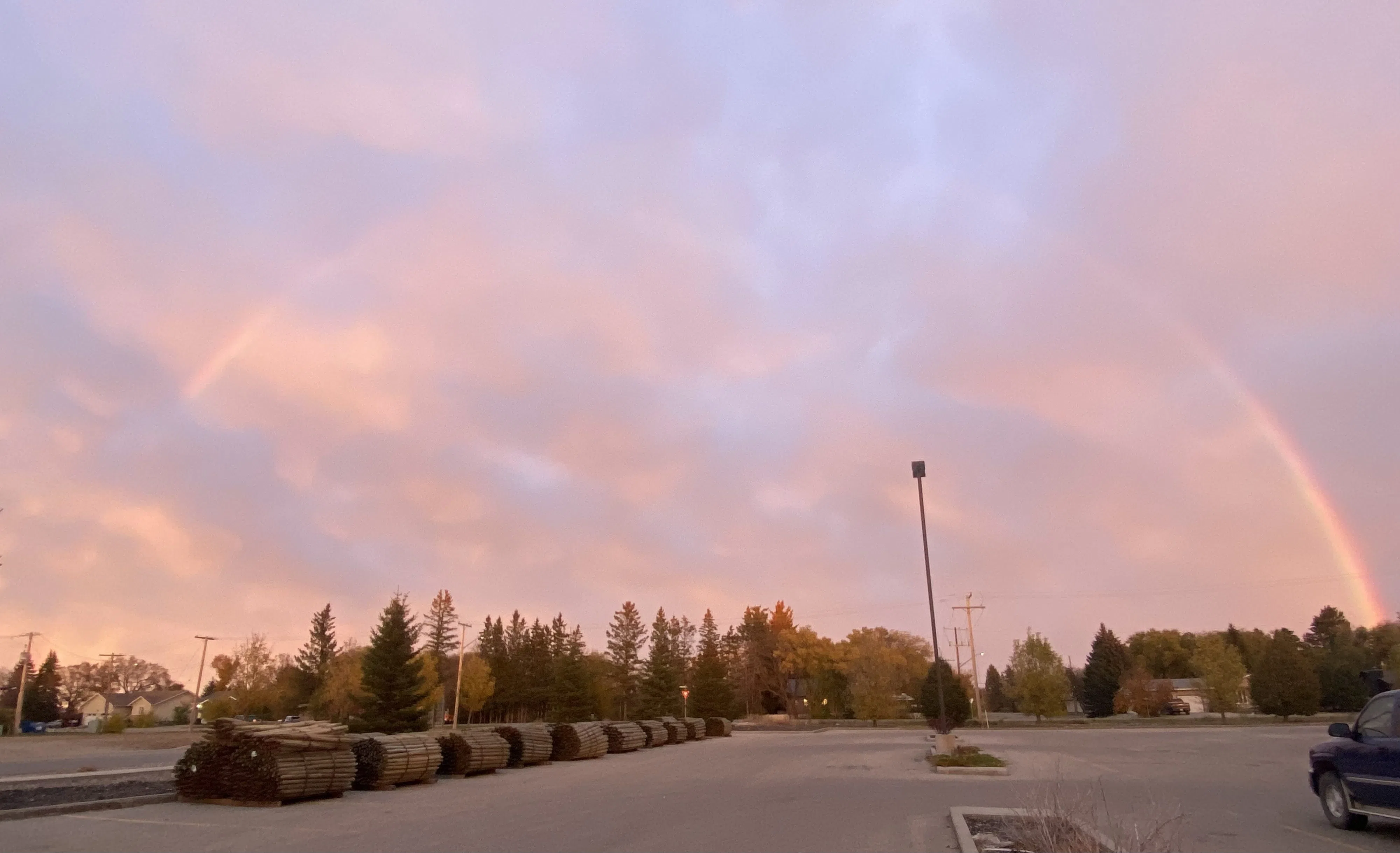 I have to admit that I feel like the ONLY person out there who didn’t the Northern Lights this past little while. But I did get to see the beautiful rainbow coming home yesterday evening. The sunset had the clouds all aglow with brilliant oranges and yellows. And in those clouds was the brightest rainbow I have seen in a very long time.