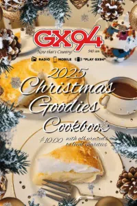 The 2025 GX94 Christmas Goodies Cookbook is here! This is the largest cookbook to date and we are so excited for you to see it! The GX94 Christmas Goodies Cookbook will be for sale all throughout October and November around the GX94 listening area. Each book is only $10.00 and as always 100% of the proceeds raised goes right back into the community.