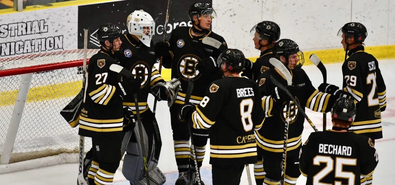 Rylan Williams paced the Bruins with a pair of goals and an assist, while Noah Asmundson, Ewan Rennie, Oliver Kramp, and Ethan Andrews also found the back of the net.