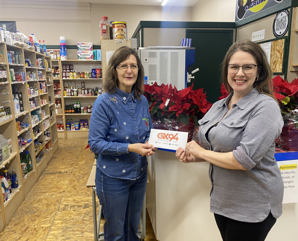 Chairperson Barb Biccum says the donation, provided through the proceeds from the sale of the GX94 “Christmas Goodies” cookbook, may be used in part, to buy a few toys for kids, but the majority of it will go toward putting together Christmas food hampers.