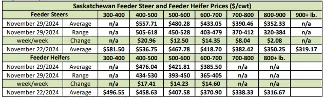 The number of cattle being marketed is going down but demand remains high, keeping prices for feeder steers and heifers up in the province. The Cattle Market Update for the week ending November 29, pr...