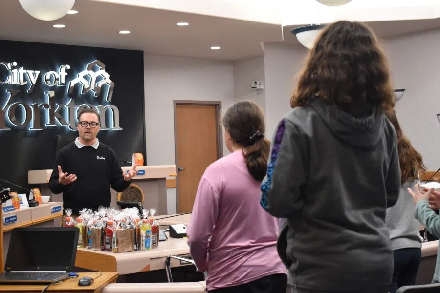 Tanner Wallace-Scribner Oct 20, 2025 Yorkton Mayor Aaron Kienle talks to students from St. Paul's School. (Photo: Tanner Wallace-Scribner)