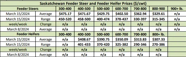 Prices for feeder steers and heifers in the province were up compared to the last reported price differences on March 1, according to the latest Cattle Market Update for the week ending March 15. Star...